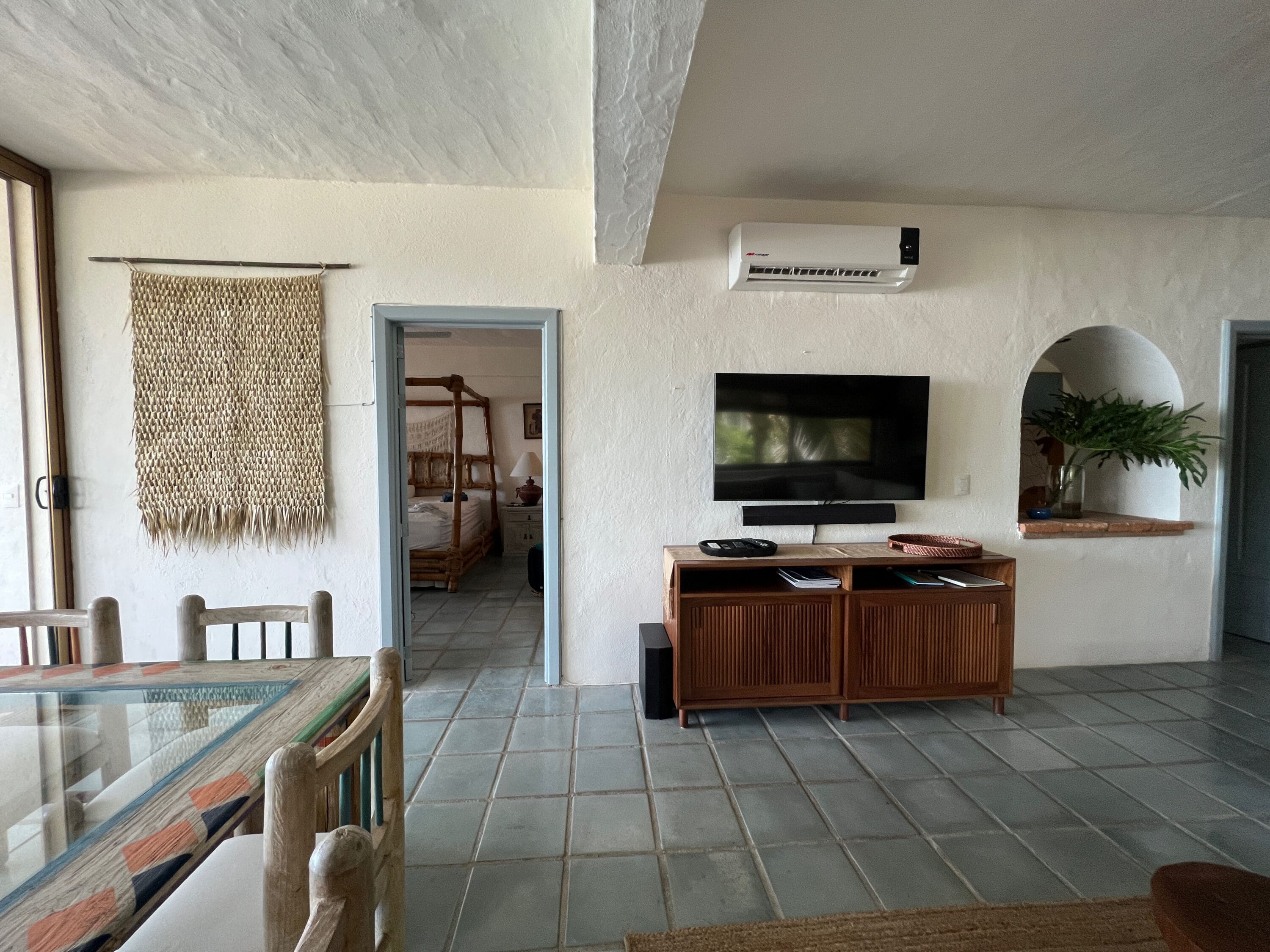 The Master suite features a rain shower and Japanese soak tub with views of the ocean from both the bathroom and the bedroom. Air conditioning units, mosquito nets, and new lighting in every room creates a breezy, relaxing atmosphere to unwind and enjoy the natural beauty of Mexico.