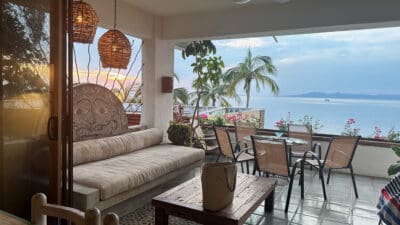 To the south, you’ll see the rocky coastline of Banderas Bay; to the north, you can enjoy Puerto Vallarta’s city lights. From our patio, you get a wide 180° view across the bay, and during the holiday season you can often spot fireworks at night.